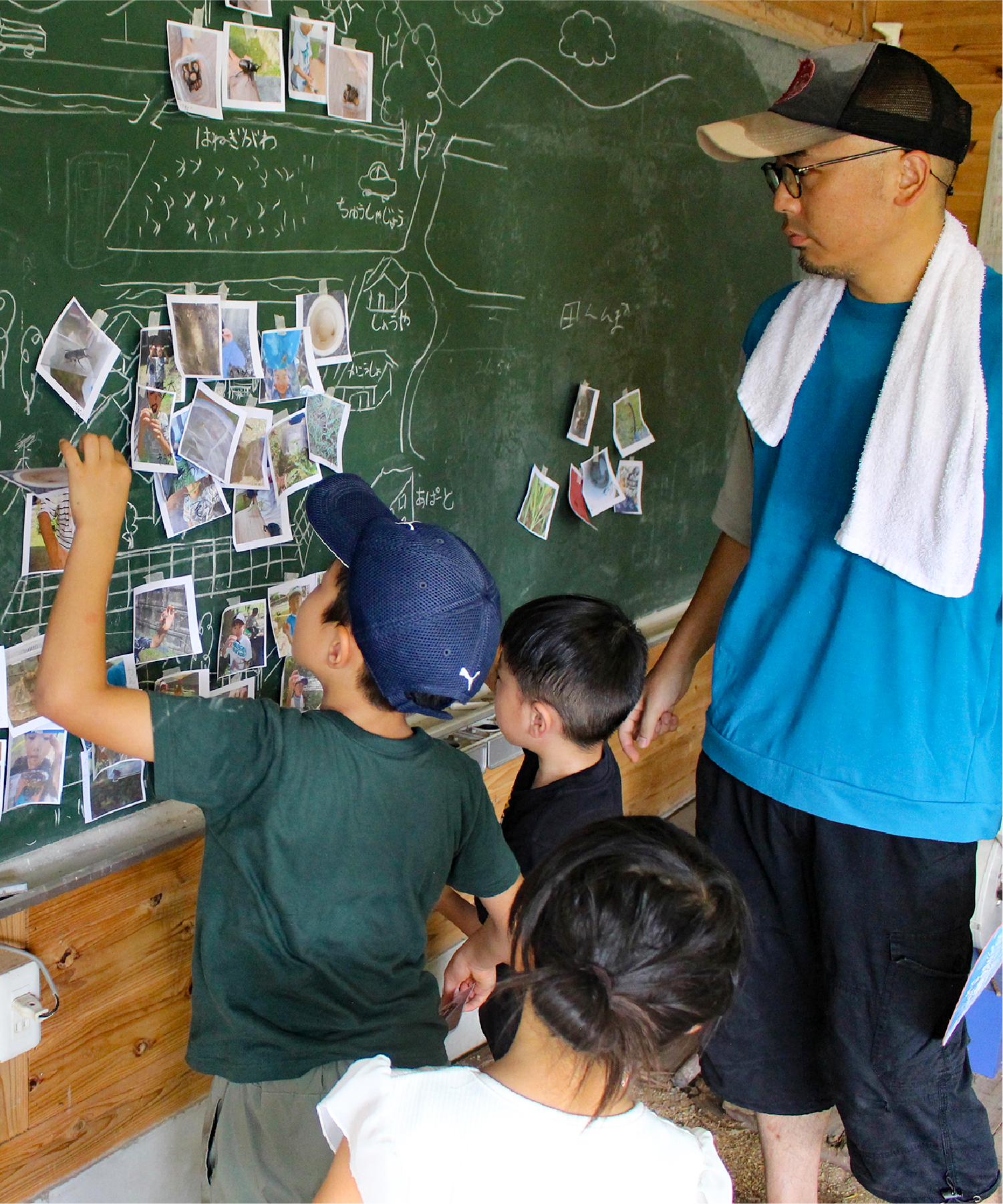 クヌギの山を整備し、カブトムシが集まる森をつくる試み。夏には子供たちが昆虫採集。