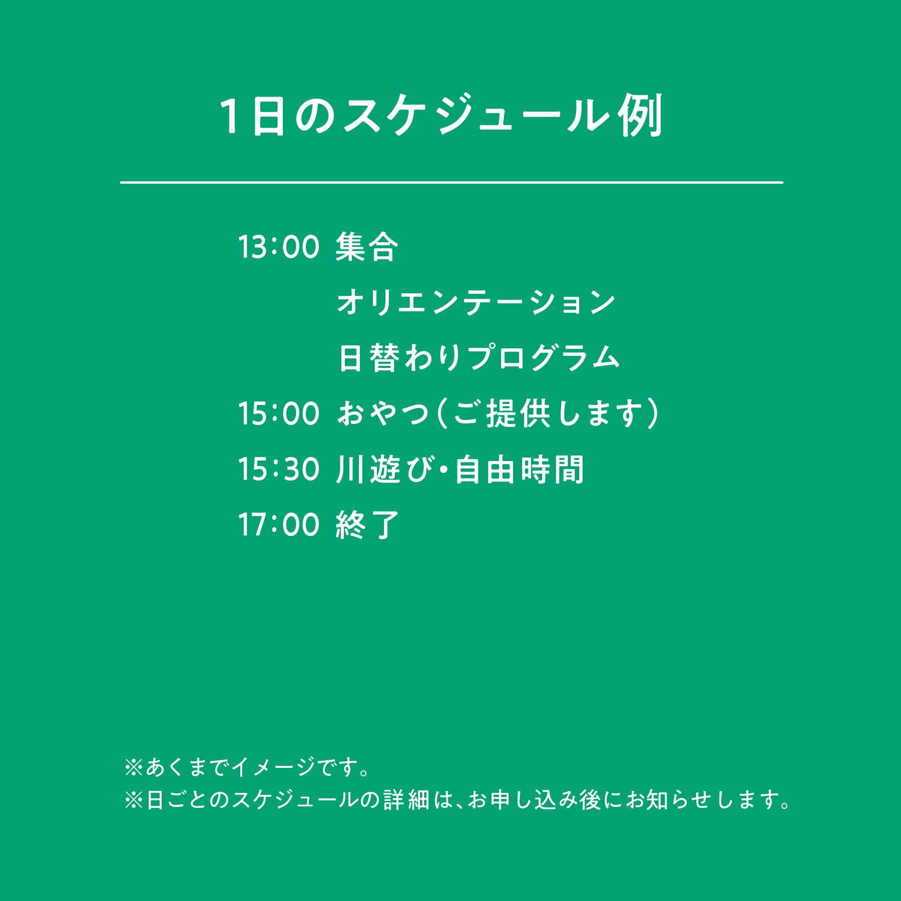 ※保護者同伴の場合、大人も同額参加費を頂戴いたします。