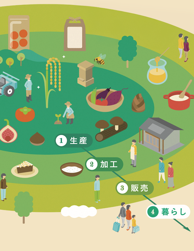 里山の自然環境での生産、製造、販売の一連の体験と住まいをフルセットで提供